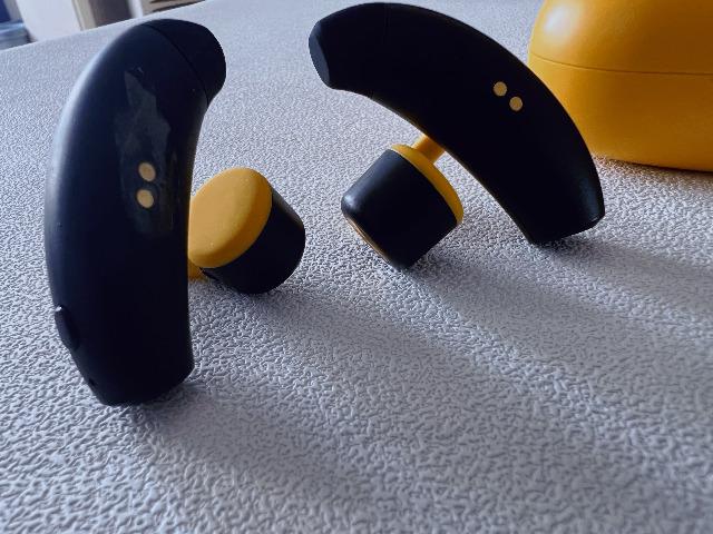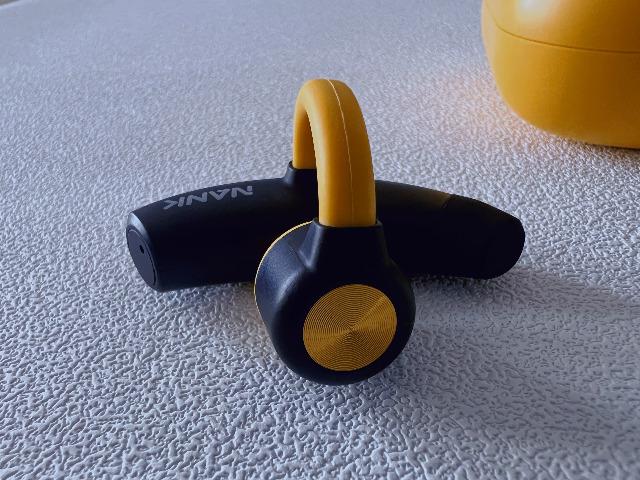 這次南卡在OE這款產品上采用了經典的黑黃配色,偏棕黃色耳機盒,看起來青春感不錯。耳機內部放著同樣是黑黃搭配的耳機機身,耳機柄部分采用了黑色機身的設計,連接部分同樣是深黃色,耳塞部分選擇了紅黑相間,只能說南卡是下了功夫的,骨傳導耳機的設計不好做,能夠讓用戶滿意就更難了,但是南卡OE這次做到了。